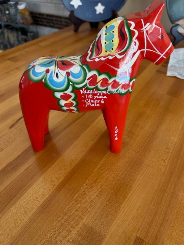 Dala horse for age group placing at the Vasaloppet USA.