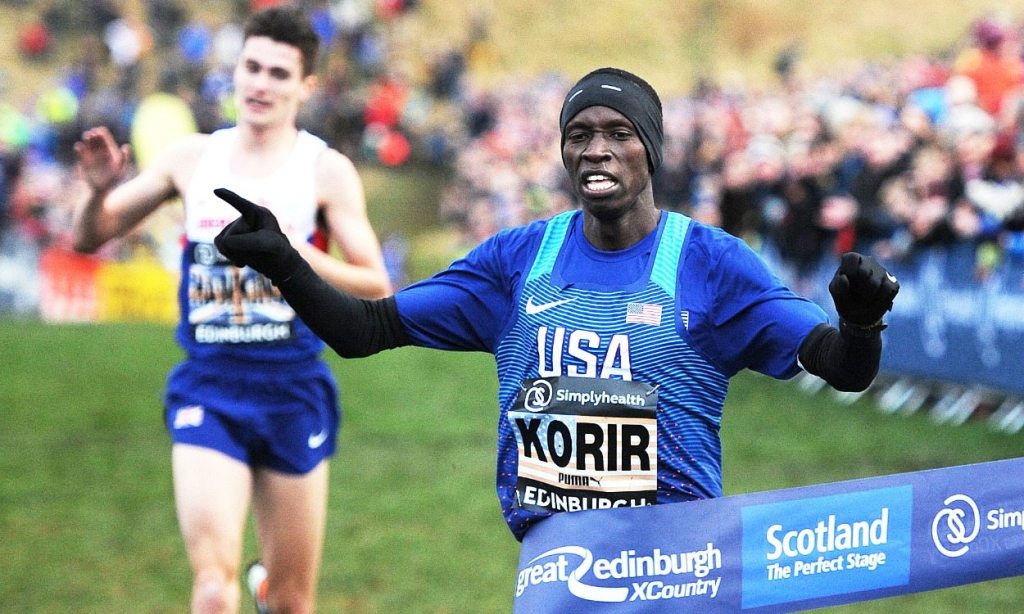 Korir winning Edinburgh XC against World and Olympic 4th place marathoner, Callum Hawkins of Britain (Athletics Weekly)