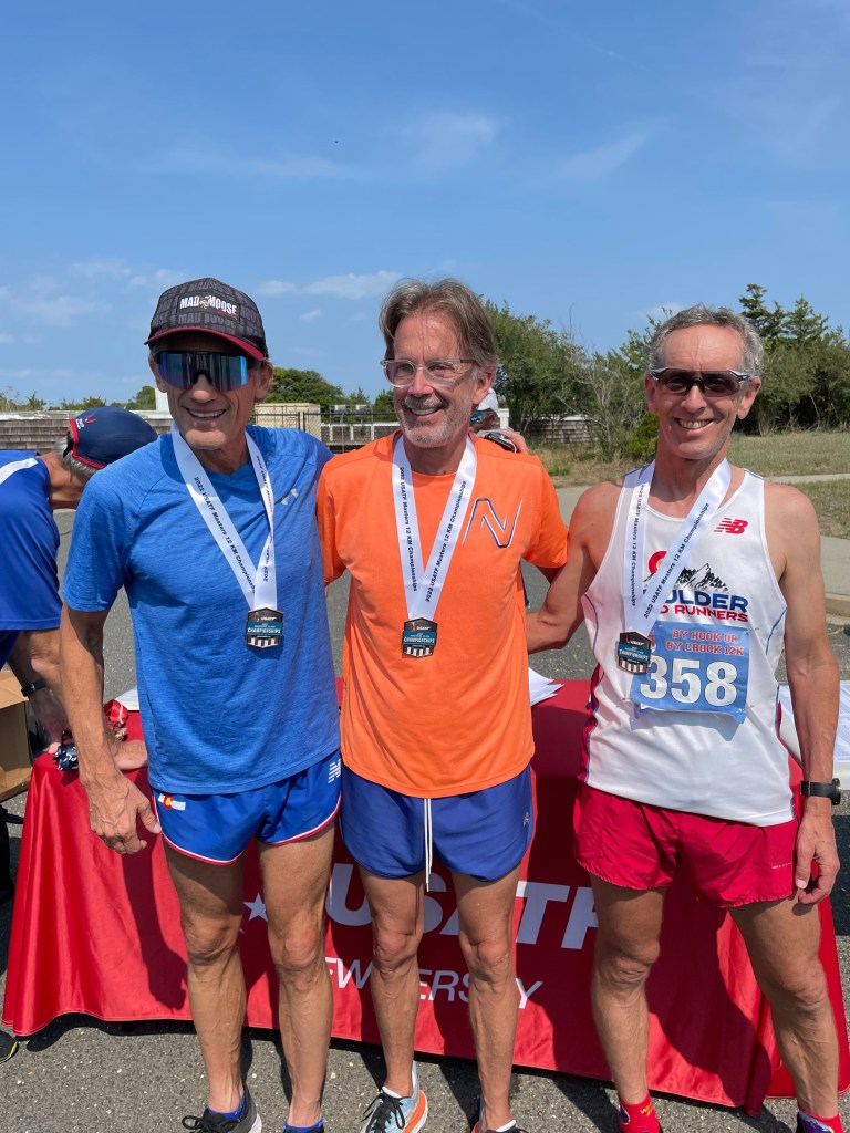 The By Hook or By Crook 12K on Sandy Hook, NJ was the penultimate event of the eight race 2022 USATF Masters Grand Prix road and cross country series. And we had everything on the line. Our masters age group team, the Boulder Road Runners, had been leading the series, comfortably, all year. However, Shore Athletics of New Jersey, the race’s host, had been running a stealth campaign. By May we realized that we would need to finish first or second in this race–or beat our East Coast rival team. If they won or beat us by two spots they would take an insurmountable lead into the final race next month at on our home course. It was that simple.